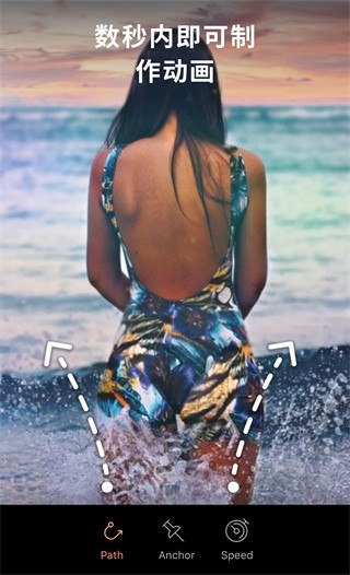 1、软件的动画路径工具允许用户通过简单划线,精准定义照片中元素的流动方向与范围。