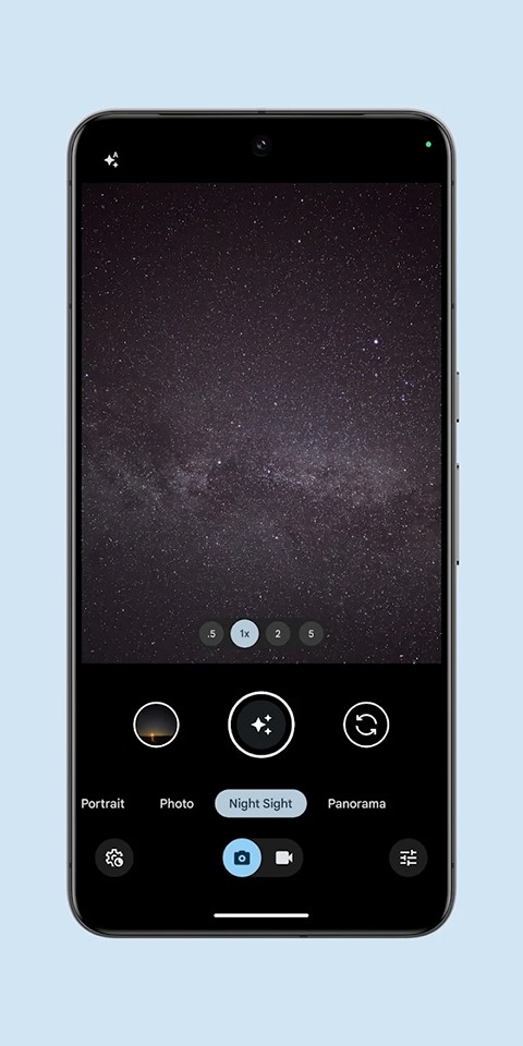 2、夜视模式,长曝光+降噪算法,无需闪光灯即可提亮夜景,手持也能拍银河。