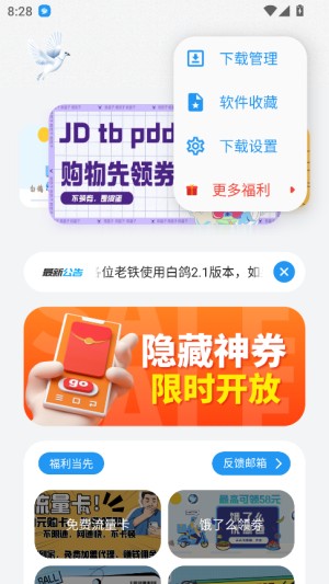 白鸽软件盒子,顾名思义,它是一款移动端软件资源下载平台,你能在这搜罗各类黑科技工具、破解版应用、去广告版游戏,以及日常所需的实用小插件,以绿色、安全、纯净为宗旨,打造了一个让发烧友爱不释手的手机资源宝库。