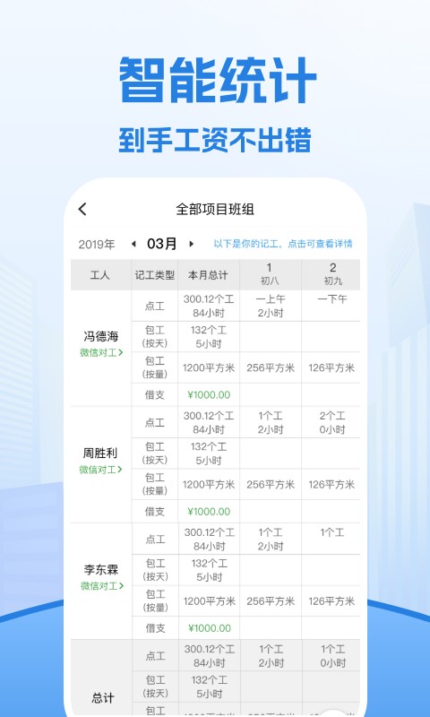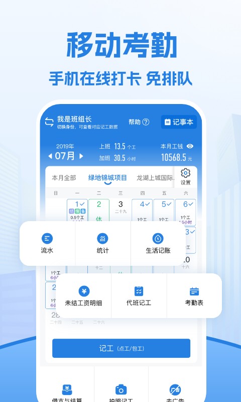 2.大幅度的提高我们的记工效率,所有的考勤数据都可以实时同步。