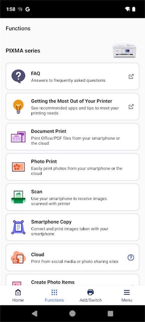 佳能打印安卓版是一款打通手机与打印机的无线连接的手机软件,深度兼容 PIXMA、SELPHY、MAXIFY 等多个系列佳能打印机,支持照片、文档、PDF、Office 文件等多元格式打印,同时整合扫描、复印、云存储上传等实用功能,覆盖办公文档处理、家庭照片打印、学习资料复印等全场景需求,操作界面简洁直观,无需复杂设置即可实现无线打印,还能实时监控墨水用量、一键订购耗材,让打印操作告别繁琐,成为办公族与家庭用户的高效助手,让用户进行打印更轻松。