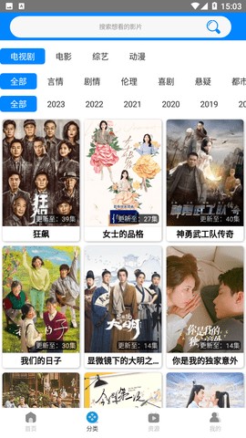 2.首页上面有非常清晰的影视分类题材,为用户进行了清晰的筛选。