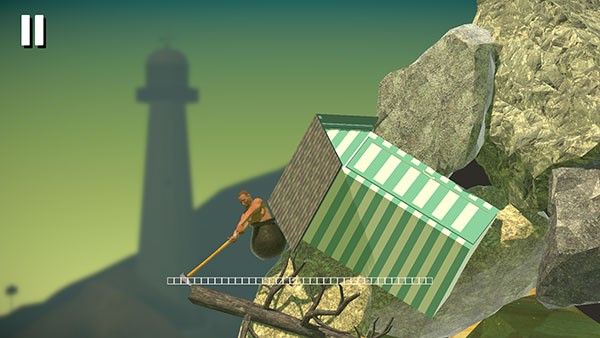 3、遇到第三个障碍,我们需要先把自己弹起来,直接利用第一块石头跳到第二个船桨上,然后慢慢挪动锤子继续往上。