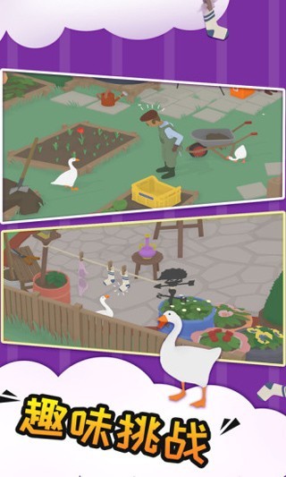 捣蛋鹅双人版是一款以合作恶作剧为核心的欢乐休闲游戏。玩家与一名伙伴将分别操控两只无法无天的大鹅,在一个宁静的英国式村庄中展开一系列精心策划的捣蛋行动。游戏的核心乐趣并非直接对抗,而是运用鹅的简单能力,比如鸣叫、啄咬、扇翅、拖拽物品等等与环境及NPC互动,以完成每关的恶作剧清单。两只鹅需要相互配合,分散村民注意力、传递关键道具、制造连锁混乱,在避免被抓住的同时,将整洁有序的村庄搅得天翻地覆,享受纯粹的、无厘头的合作捣蛋快感。