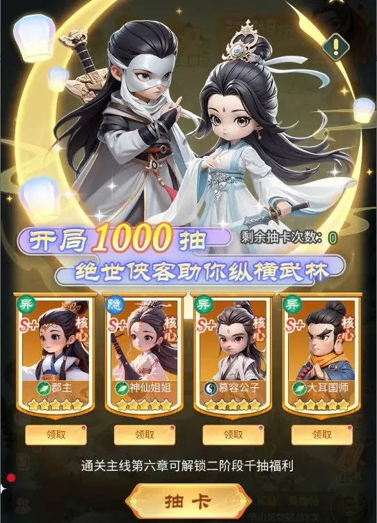 S级侠客初始星级为5星,升星上限为10星,获取难度不高且升至高星后也有不俗的强度,既可以作为前期过渡,也能用作S+侠客的升星材料。